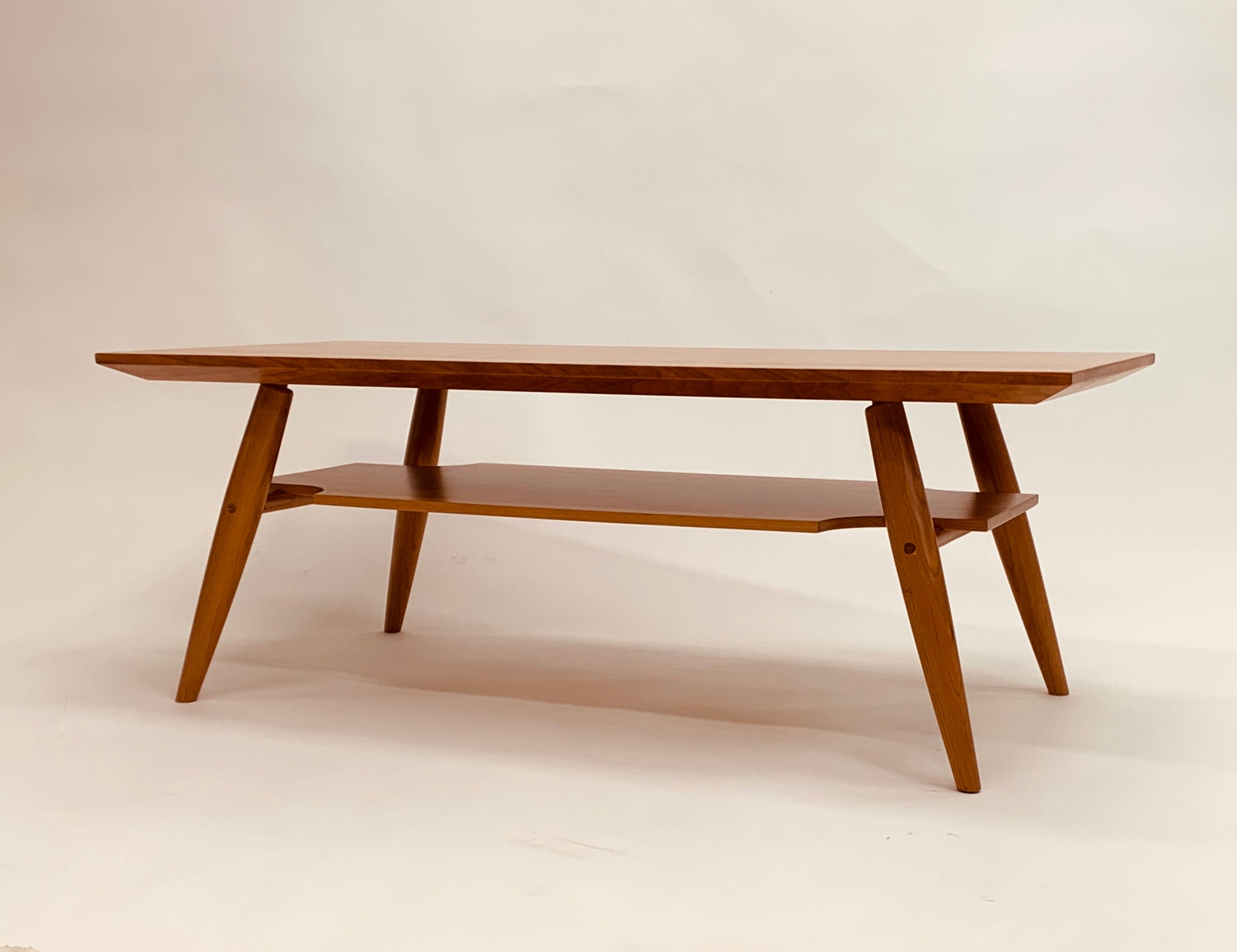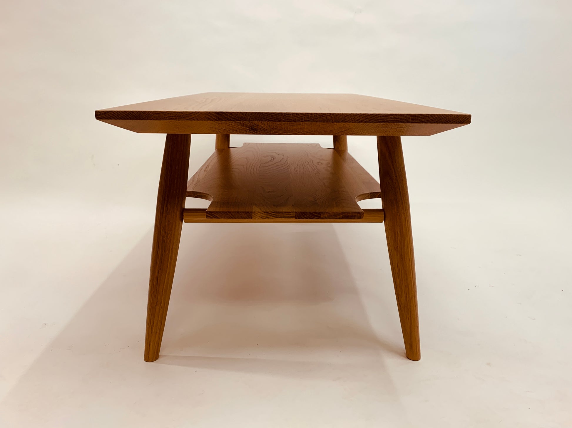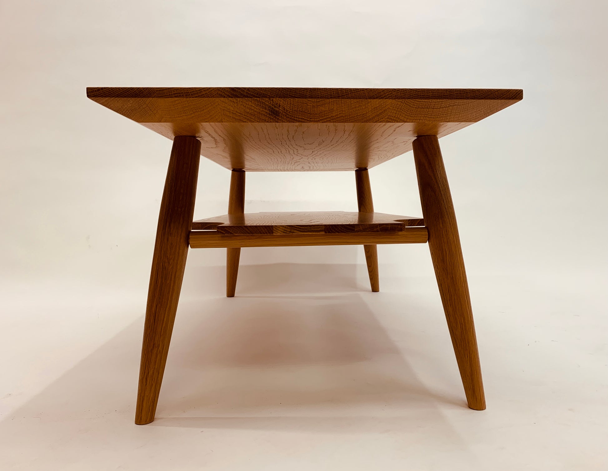 The Carry Underwood coffee table is a sleek, mid-century-inspired, coffee table with storage underneath. Real traditional joinery, with wedges on the rail tenons to ensure a lifetime without wobbles.