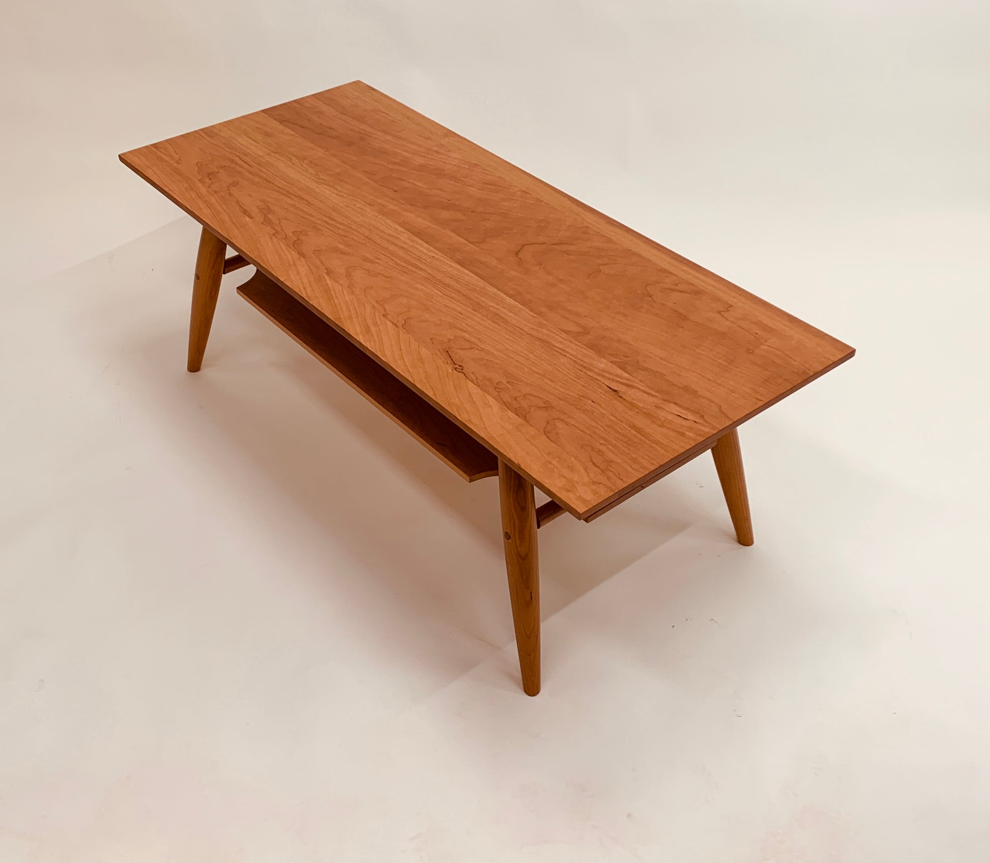 Mid-Century-Inspired Coffee Table with Shelf in Hardwood